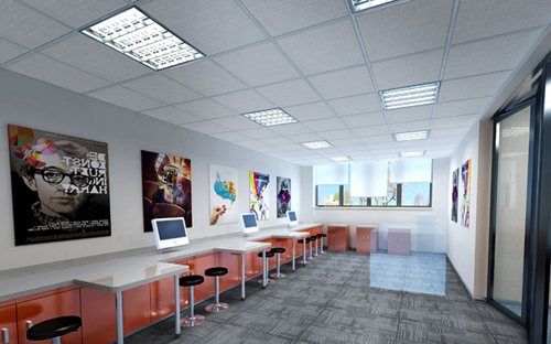 新型經濟社會最缺的就是人才,而人性化的辦公環境是必備條件之一。天花板上的創意六邊形,使得辦公空間富有想象力,讓職員的思緒能放開轄制,更好的為公司創造價值。清新亮麗的顏色搭配,讓人耳目一新,心情舒暢,能夠高效率的工作。